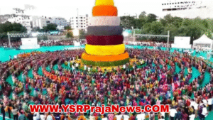 YSR Praja News : తెలంగాణ బతుకమ్మ పండుగ ప్రపంచ స్థాయి గుర్తింపు పొందింది. మైదానంలో ఏర్పాటు చేసిన 63 అడుగుల ఎత్తైన భారీ మెగా బతుకమ్మ గిన్నిస్ వరల్డ్ రికార్డులో స్థానం సంపాదించింది.