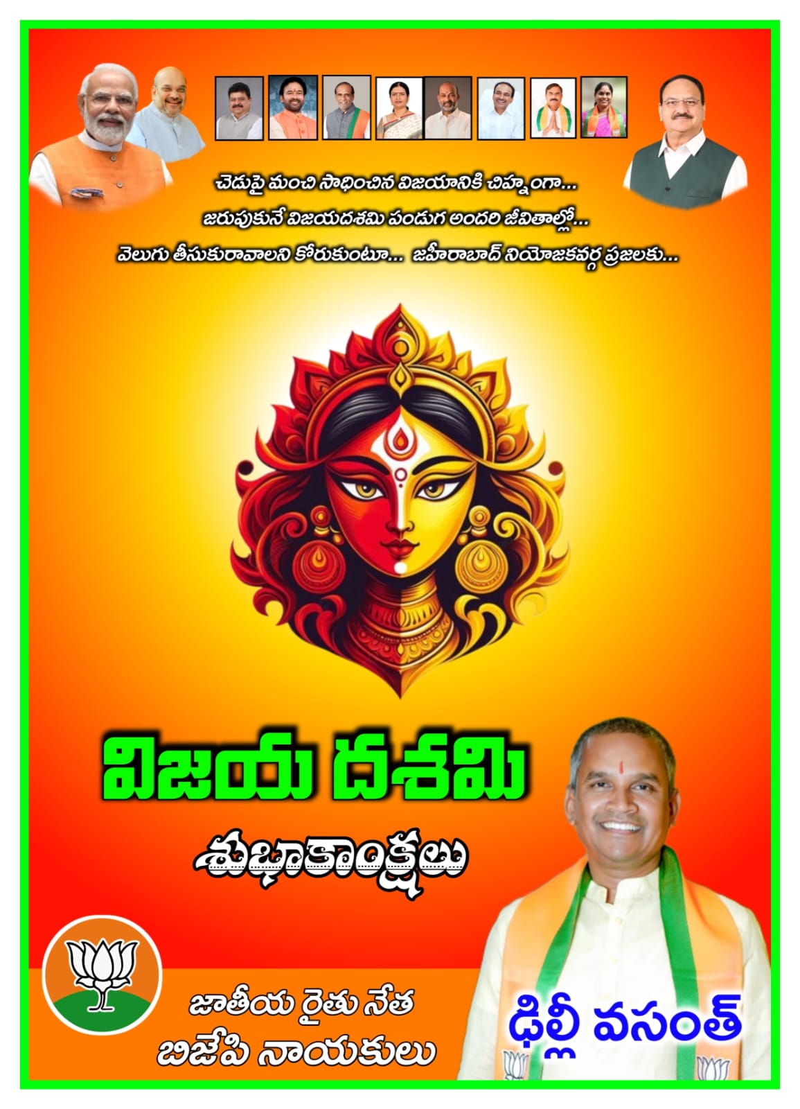 తెలుగు రాష్ట్ర ప్రజలందరికీ దసరా శుభాకాంక్షలు తెలిపారు వైఎస్ఆర్ కాంగ్రెస్ పార్టీ ఉమ్మడి మెదక్ జిల్లా మాజీ రాష్ట్ర నాయకులు డప్పురాజు. చెడుపై మంచి గెలుపుని ప్రతిబింబించే ఈ పండుగ ప్రతి కుటుంబంలో ఆనందం, సిరిసంపదలు నింపాలని ఆయన ఆకాంక్షించారు.